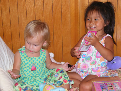 Eden helping her Daddy put together her swing set. Bless her heart, whenever there is a project going on she is there to lend a hand and do her part and of course a girl always needs her Handy Manny tools. Also in this picture you will notice she is holding her Daddy's drink (Mt Dew of some sort, I think)..........